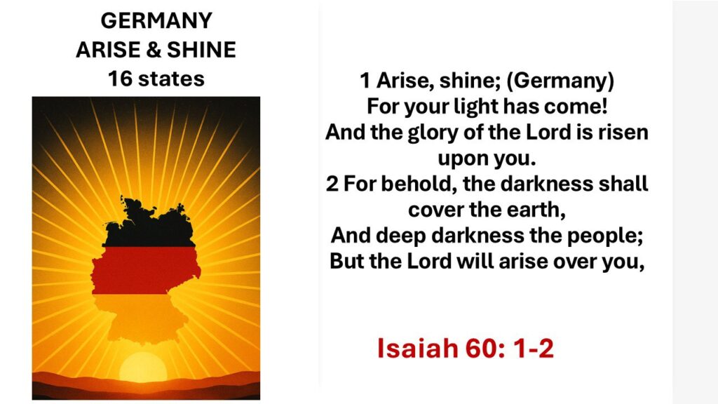 To Raise Prayer Watchmen in each of the 16 German states to intercede daily for revival, repentance, and the reign of righteousness.